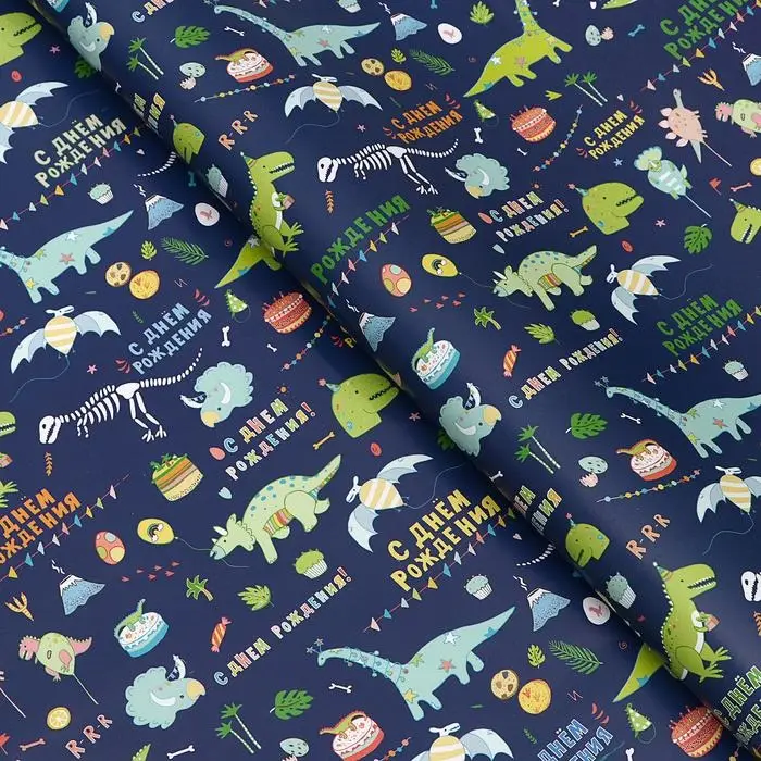 Бумага упаковочная глянцевая «Динозаврик», 70 × 100 см , 1 шт.