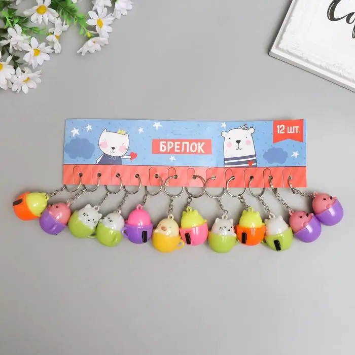 Фонарик свет на кольце "Зверёк в скорлупе" МИКС 3,8х3,3х3 см