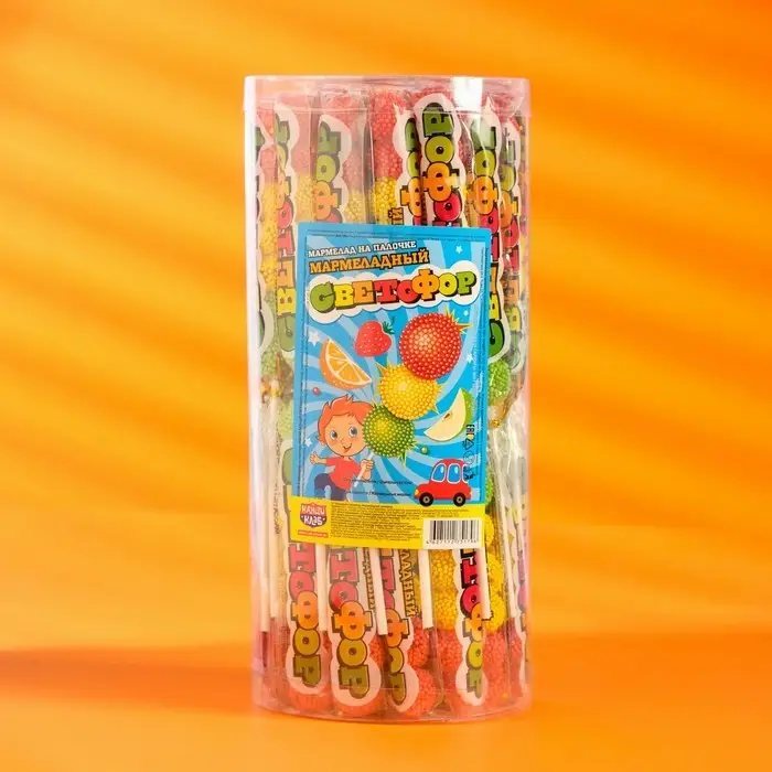 Мармелад на палочке «Мармеладный светофор» – это фруктовое лакомство, которое порадует вас и ваших детей не только своим вкусом, но и ярким видом. На палочке располагаются мармеладные шарики красного, зеленого и желтого цветов, символизируя светофор и создавая веселое настроение.