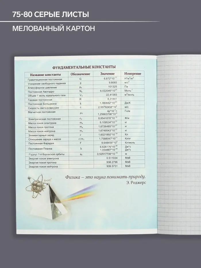 Тетрадь предметная 48 листов в клетку Calligrata «3D. Физика», серые листы