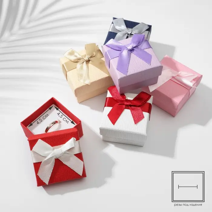 С нашими прекрасными коробочками любой подарок станет еще лучше и ярче. Футляр выполнен из прочного плотного картона. Оптимальный размер коробки 5*5см позволяет разместить кольцо. Внутри каждой коробочки с крышкой есть белая бархатная подложка. С помощью специальных прорезей на подушечке можно аккуратно разместить и зафиксировать украшение. А если убрать подложку, упаковка подойдет даже для часов с мягким плоским ремешком или на цепи.