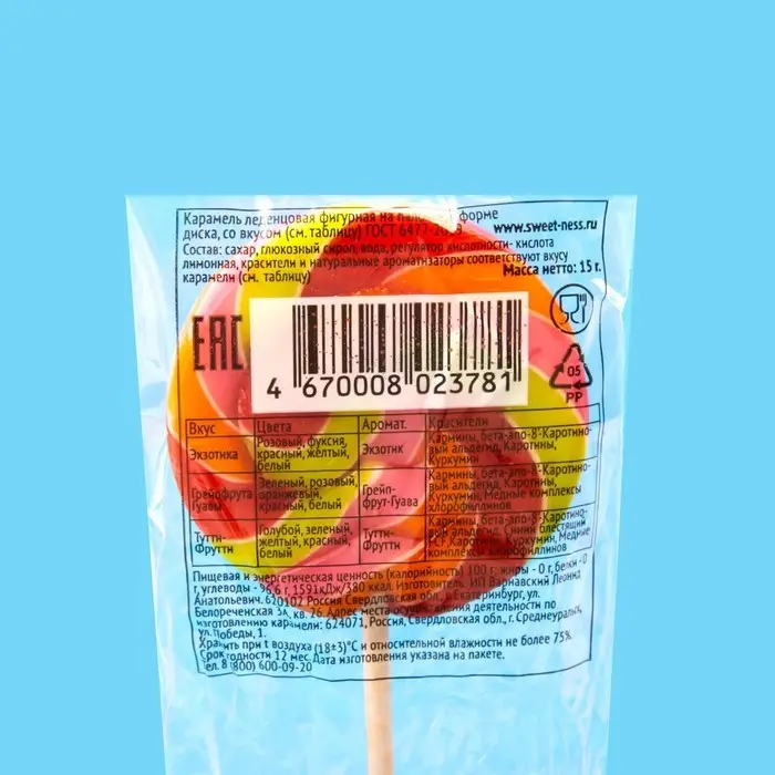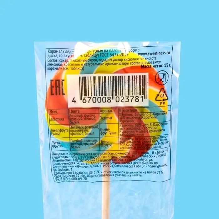 Карамель леденцовая Sweet Ness микс, 15 г
