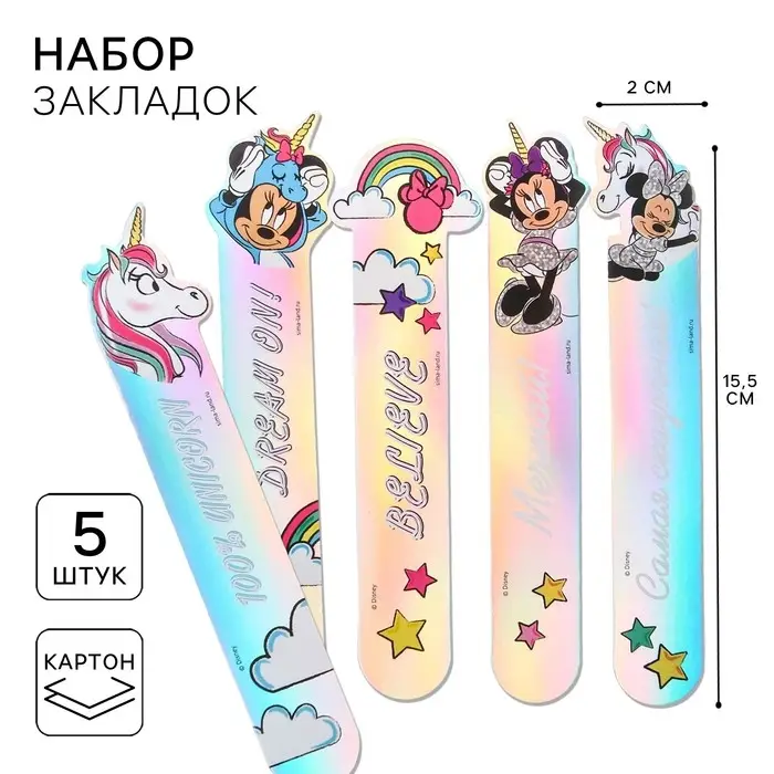 Закладки для книг, фигурные из картона, 5 шт. «Мечтай», Минни Маус