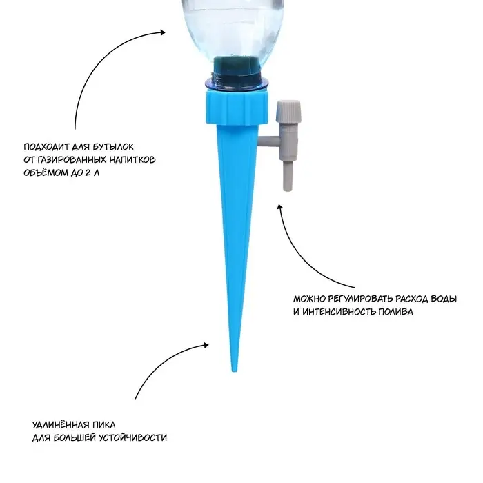 Интенсивность полива в жаркую погоду увеличивается, в прохладное время — снижается. По мере расхода воды воздуха в ёмкости становится больше, и процесс полива ускоряется.