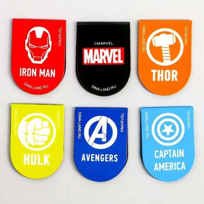 Магнитные закладки для книг, 6 шт. на открытке «Супергерои», Мстители