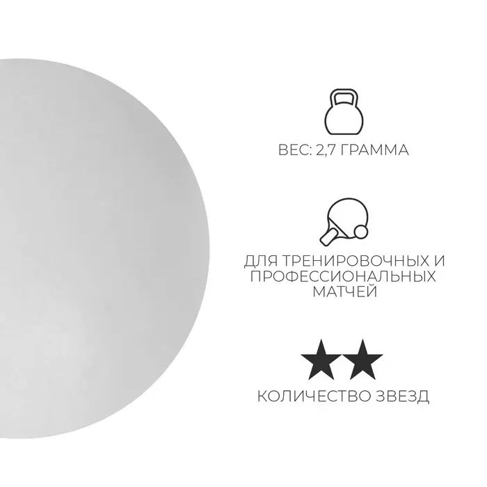 Мяч для настольного тенниса с категорией 2 звезды. Подходит для тренировок и полупрофессиональных соревнований.