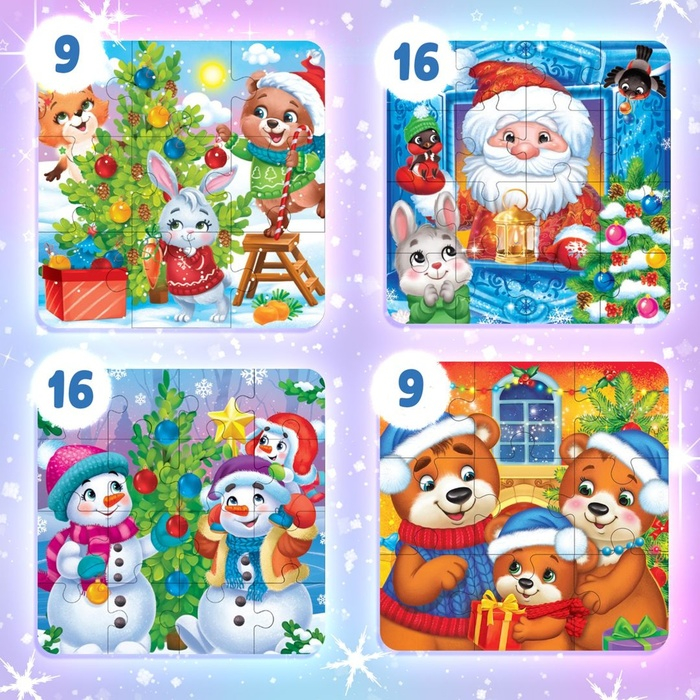 - Пазлы состоят из 9 и 16 элементов.