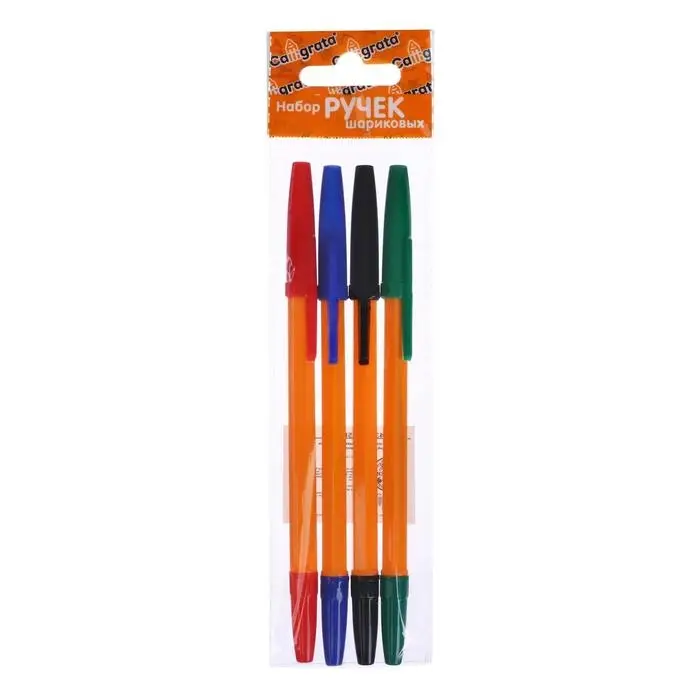 Набор ручек шариковых 4 цвета, стержень 0,7 мм, синий, красный, черный, зеленый, корпус оранжевый