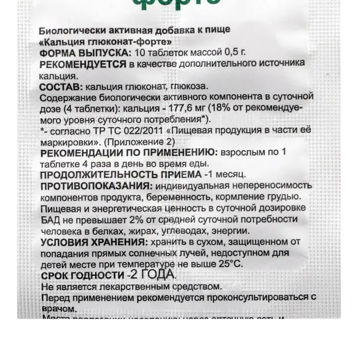 Состав: кальция глюконат, глюкоза (наполнитель).
