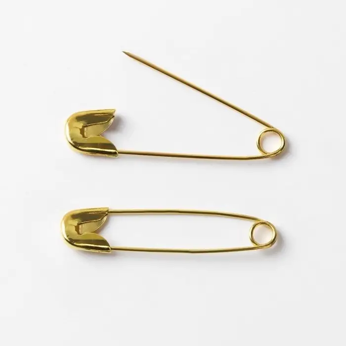 Английская булавка — универсальный помощник в быту, при шитье и рукоделии. Она пригодится для закалывания материала, драпировки ткани, создания украшений. С ней вы можете прикрепить к одежде или домашнему текстилю мягкие аксессуары. Острый край булавки прячется в безопасную петельку, она не уколет и прослужит вам долго.
