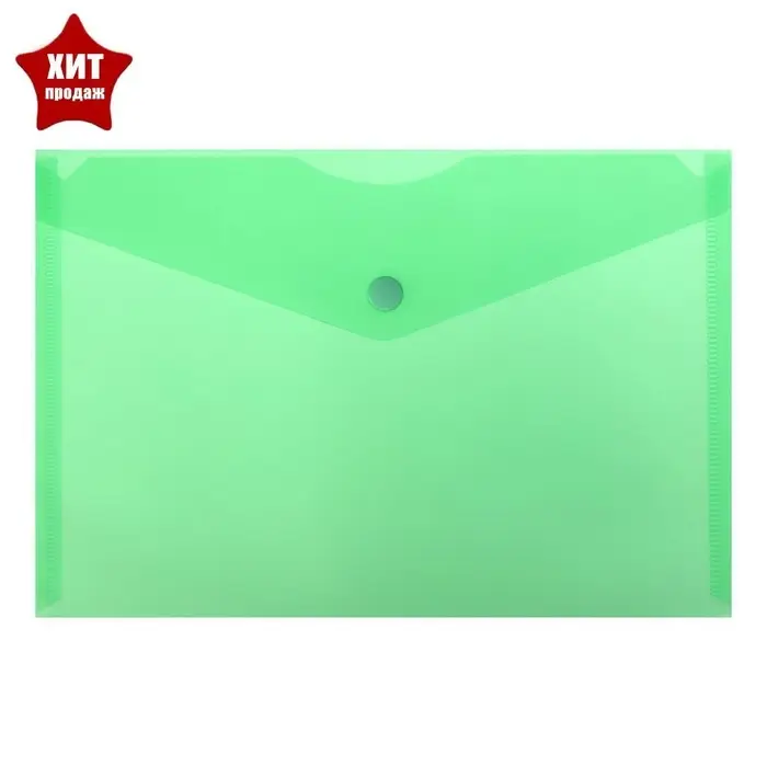 Папка-конверт на кнопке А5, 150 мкм, Calligrata Standard, прозрачная, зеленая