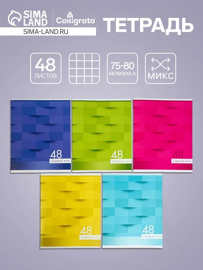 Тетрадь 48 листов в клетку Calligrata «Мозаика», обложка мелованный картон, блок №2, белизна 75% (серые листы), МИКС