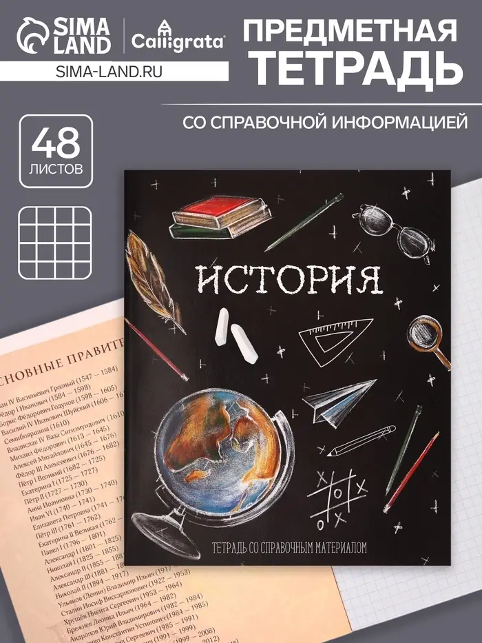 Тетрадь предметная 48 листов в клетку, Calligrata «Доска. История», обложка мелованный картон