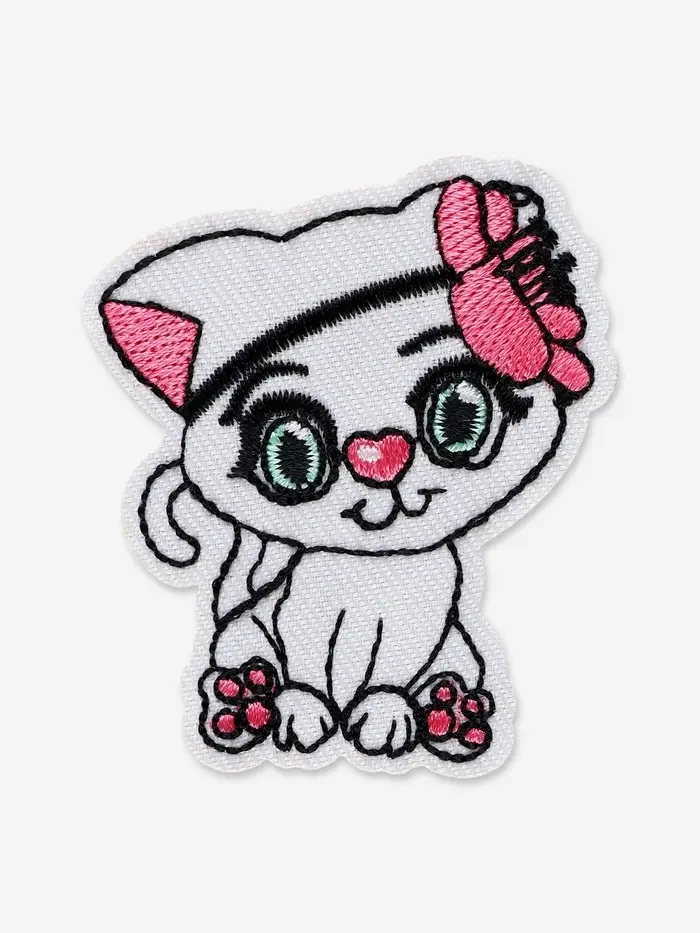Пусть текстильная аппликация с милой кошкой и нежным цветком станет ярким акцентом в образе вашей девочки. Это универсальное украшение для детской одежды и аксессуаров — подходит как для творческих проектов, так и для лёгкого декора.