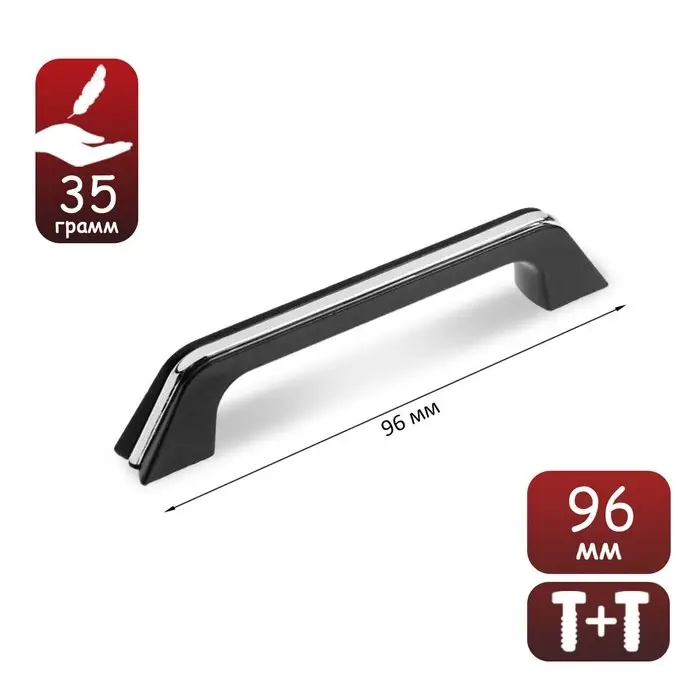 Ручка-скоба мебельная, м/о 96 мм, цвет черный, с хромированной вставкой
