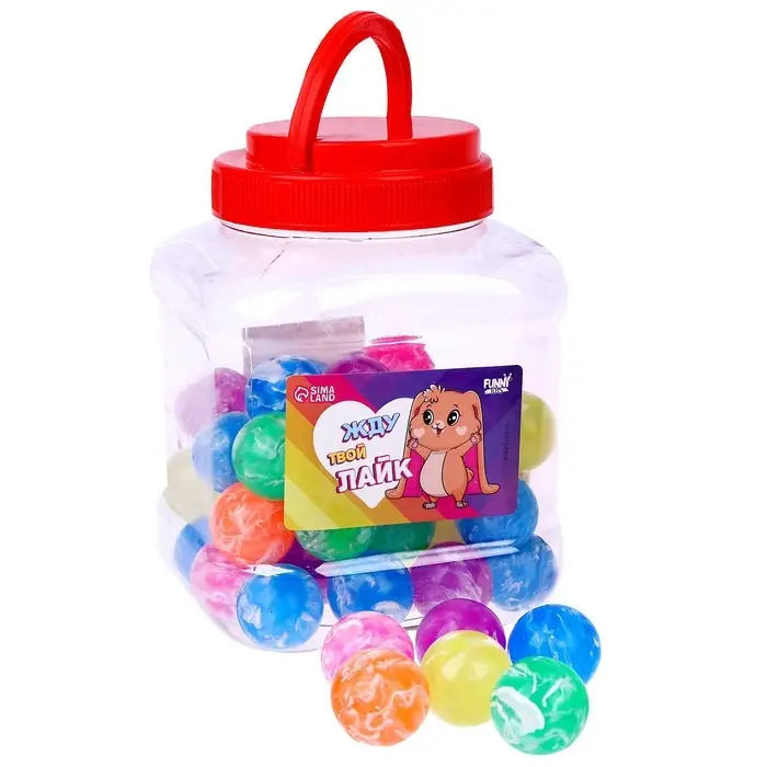 Маленький мяч для больших развлечений! Каучуковые попрыгунчики «Жду твой лайк» в банке — это яркие и упругие шарики, которые подарят радость детям и взрослым. Идеальный выбор для активных игр и хорошего настроения.