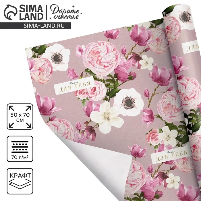 Бумага упаковочная крафтовая «Цветы для тебя», 50 х 70 см