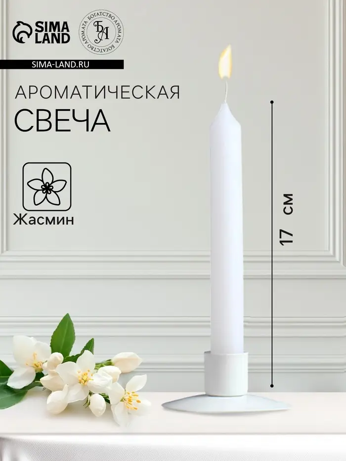 Эта свеча, высотой 17 см и диаметром 2 см, изготовлена из качественного парафина, что обеспечивает её равномерное горение и долговечность. Её цилиндрическая форма и классический дизайн делают её универсальным аксессуаром для любого интерьера. Аромат жасмина, который наполняет комнату при горении, добавит вашему дому свежести и лёгкости.