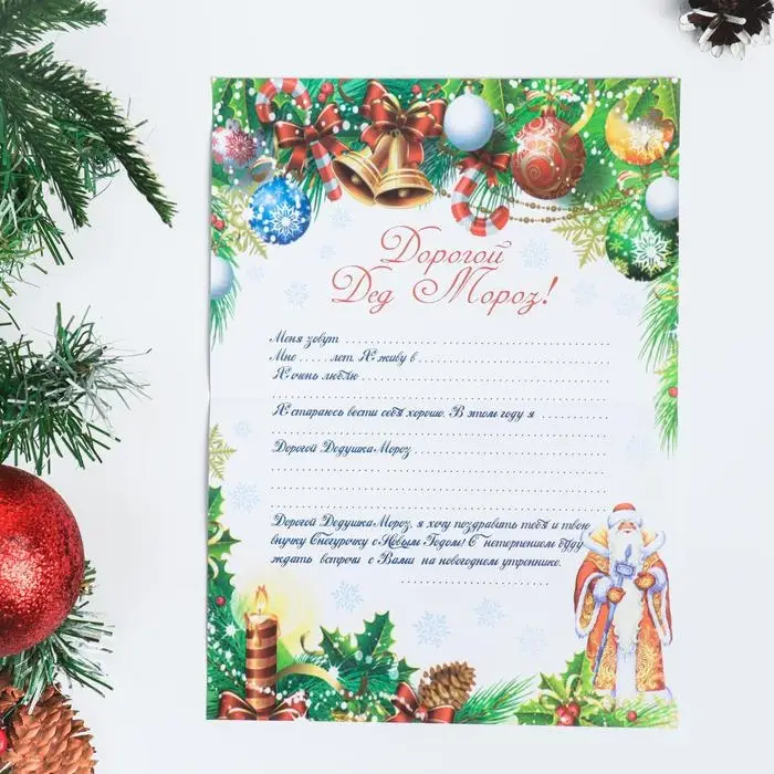 Письмо Деду Морозу, А4, 100 г/м «Колокольчики» 23×16 см МИКС