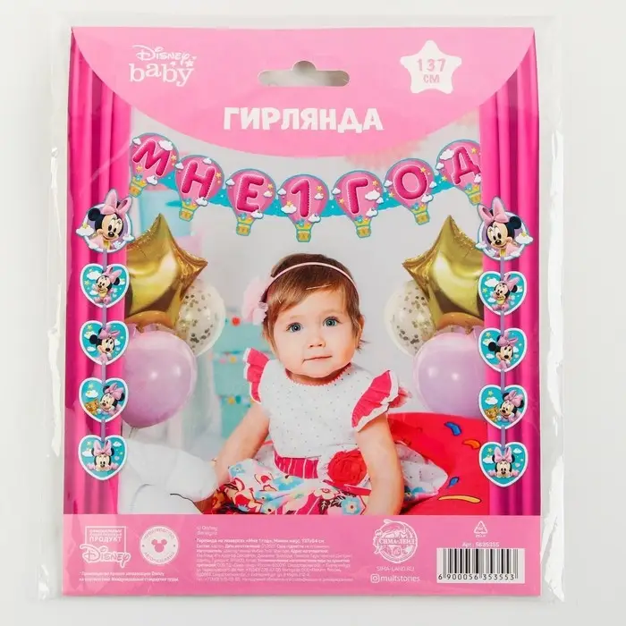 Гирлянда на люверсах «Мне 1 год», длина 137 см, Минни Маус