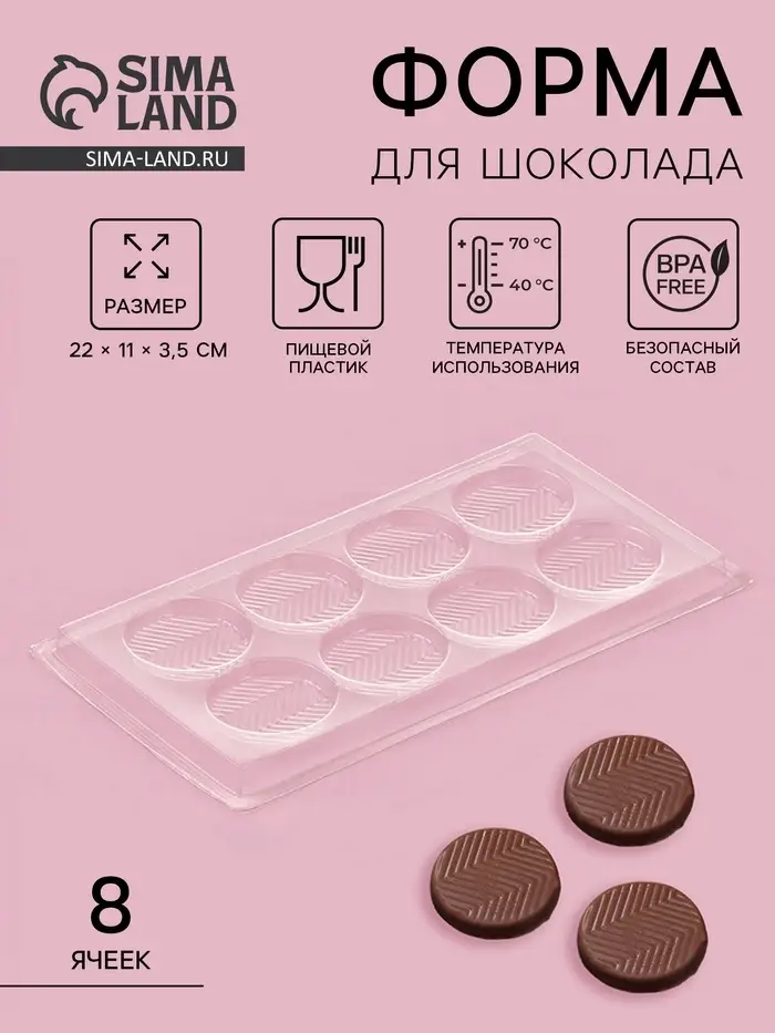 Форма для шоколада и конфет «Зигзаг», 8 ячеек, 22×11 см, прозрачная