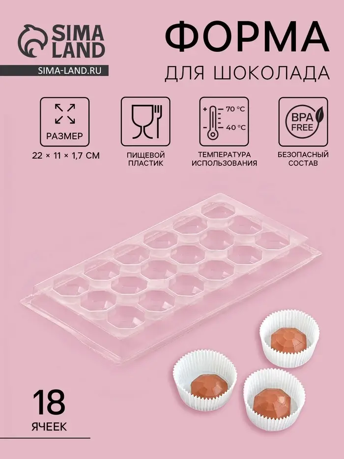 Форма для шоколада и конфет «Бриллиант», 18 ячеек, 22×11 см, прозрачная