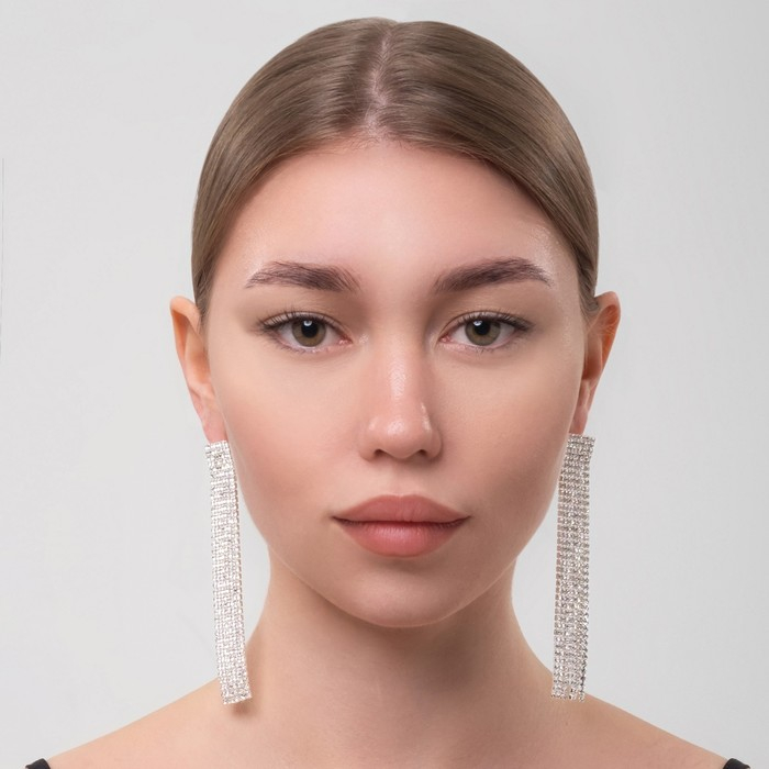 Серьги висячие со стразами «Водопад» прямые нити, цвет белый в серебре, 11,5 см