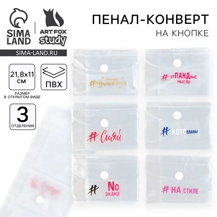 Пенал-конверт — это удобный и стильный аксессуар для хранения канцелярских принадлежностей. Он изготовлен из прочного ПВХ и имеет три компактных отделения, которые позволяют разместить всё необходимое в порядке и под рукой. Надёжная кнопка обеспечивает лёгкое открывание и закрывание пенала, а размеры 10 x 7 см делают его идеальным для использования как школьниками, так и студентами.