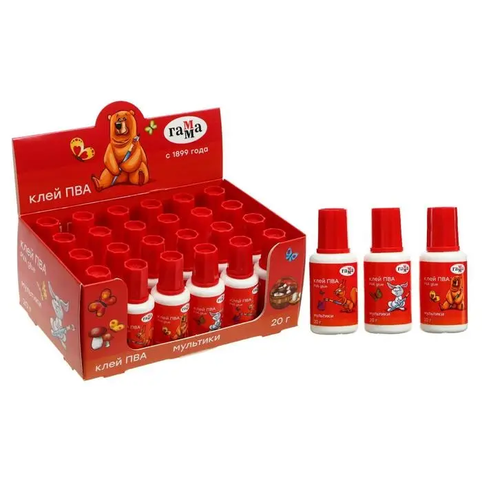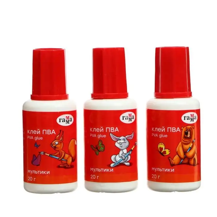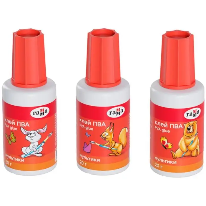 Клей ПВА ГАММА «Мультики» подходит для склеивания бумаги, фотобумаги, картона, текстиля.