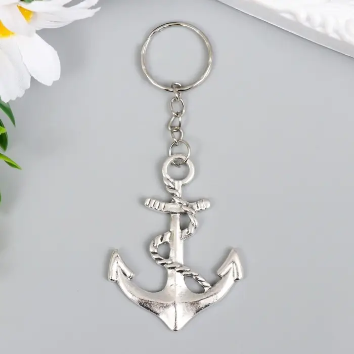 Брелок металл "Якорь с веревкой" серебро 5,5х4 см