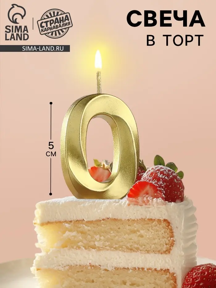 Свеча в торт на шпажке «Цифра 0», золотая, 5 см