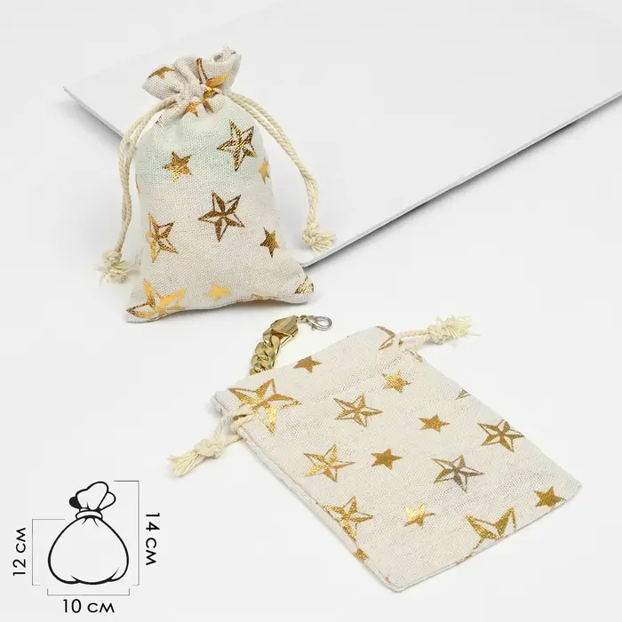 Мешочек «Лён» звёзды, 10×14 см, цвет золото