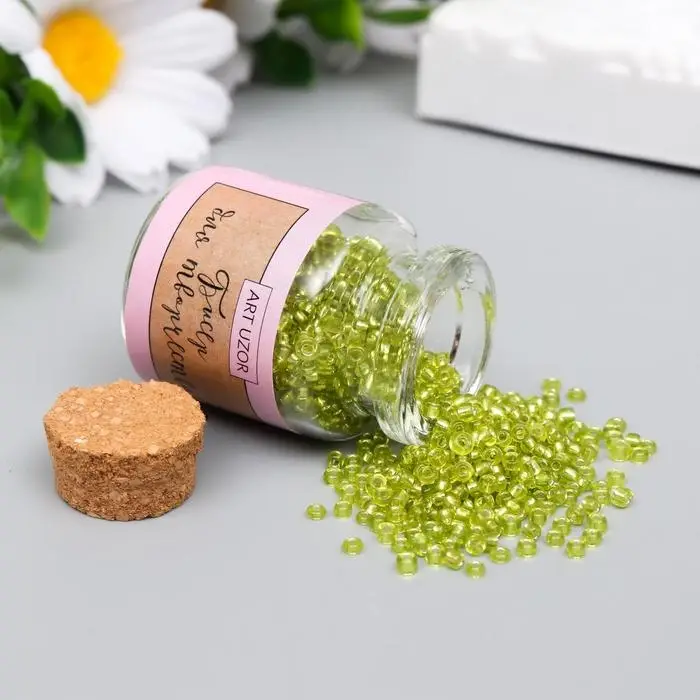 Бисер круглый 12/0 в бутылочке "Светло-зелёный" прозрачно-цветной 20 гр