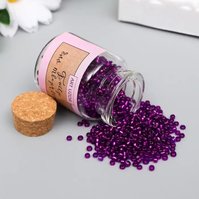 Бисер круглый 12/0 в бутылочке "Фиолетовый" прозрачно-цветной 20 гр