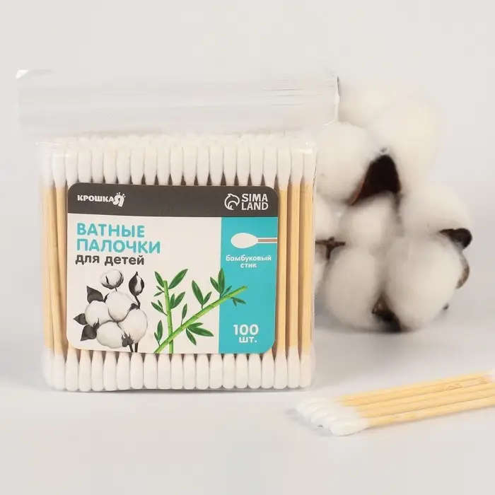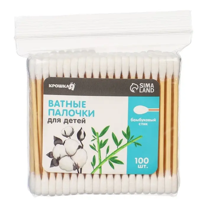 Ватные палочки, пакет 100 шт., наконечник - классика, хлопок/бамбук(стик)