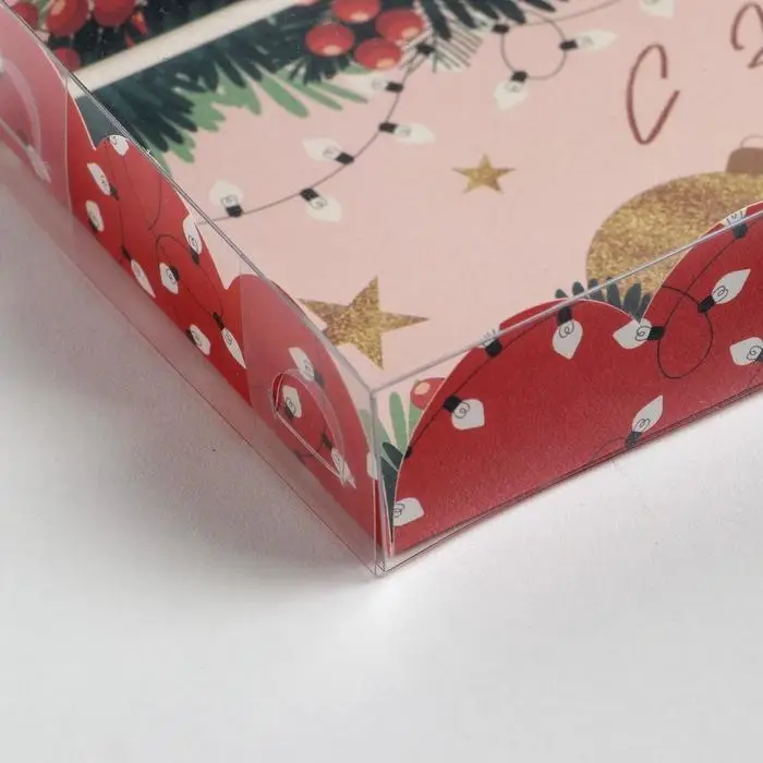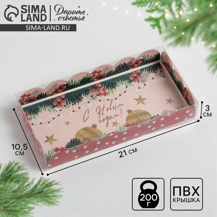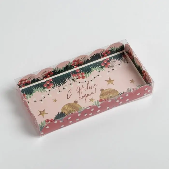 Коробка для кондитерских изделий с пластиковой крышкой «Гирлянды», 10.5 х 21 х 3 см