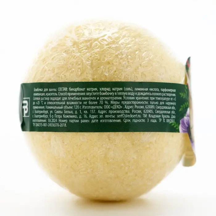Бомбочка для ванны, 120 г, аромат полевых трав, Кладовая красоты