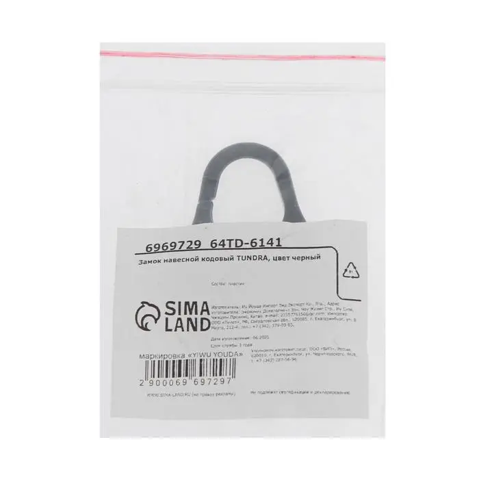 Замок навесной кодовый ТУНДРА ZK001, черный