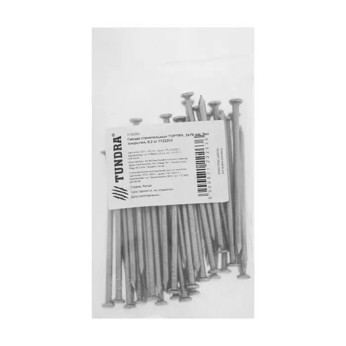 Гвозди ТУНДРА, строительные, ГОСТ 4028-63, без покрытия, 3×70 мм, фасовка 0.2 кг