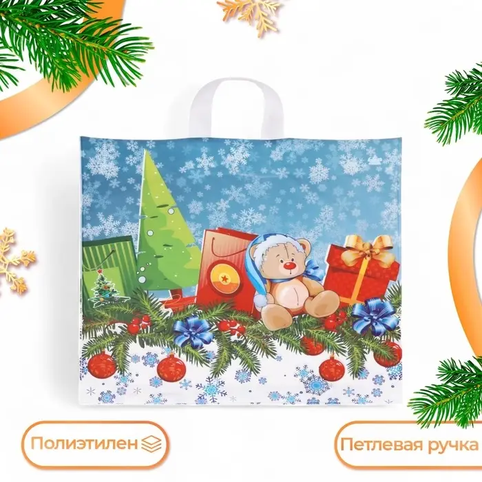 Пакет «Подарки к Новому году», полиэтиленовый с петлевой ручкой, 42×44 см