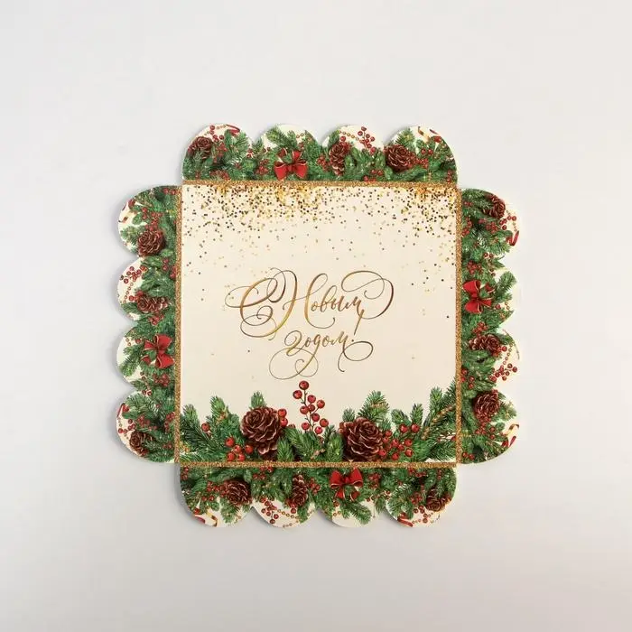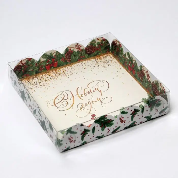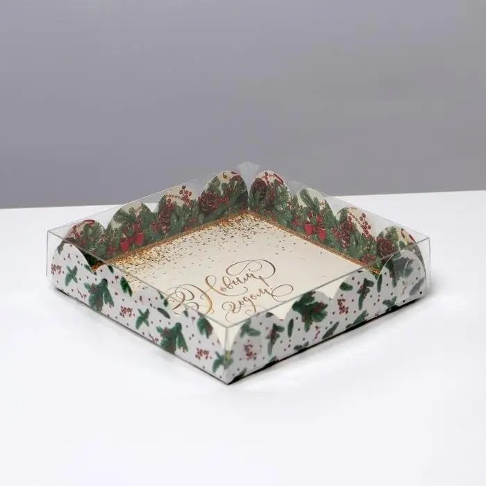 Коробка для кондитерских изделий с пластиковой крышкой «Новый год», 13 х 13 х 3 см