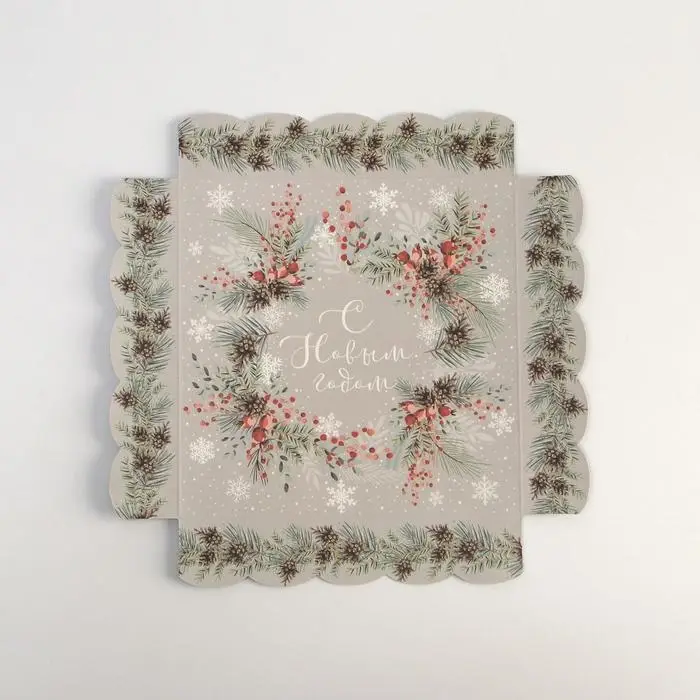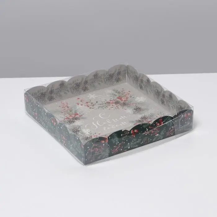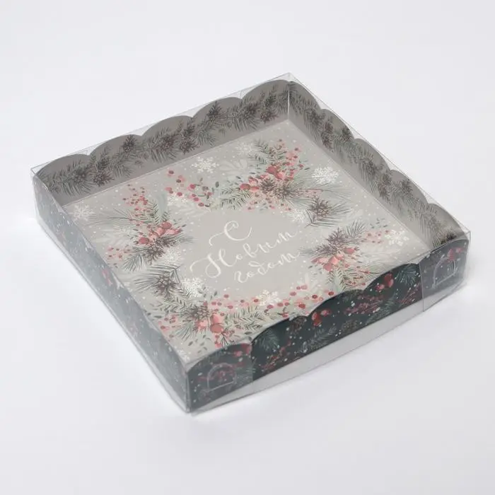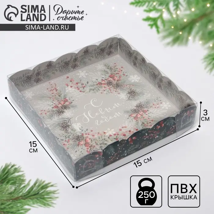Коробка для кондитерских изделий с пластиковой крышкой «Венок», 15 х 15 х 3 см