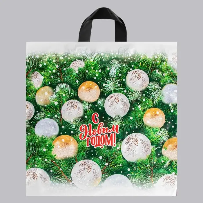 Пакет полиэтиленовый с петлевой ручкой, прочный с оригинальным рисунком.