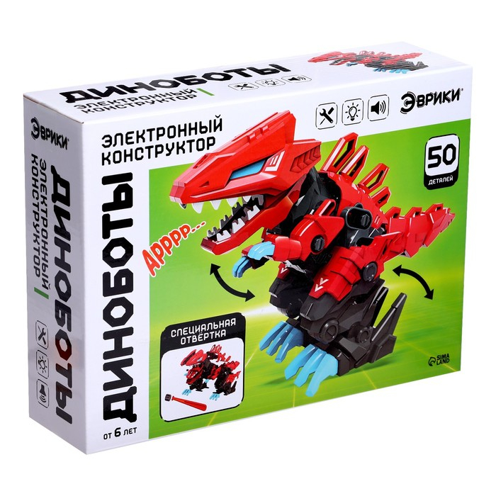 С электронным конструктором ребёнок соберёт могучего и опасного динозавра и с удовольствием поиграет с ним. Динобот умеет ходить и издавать звуки.