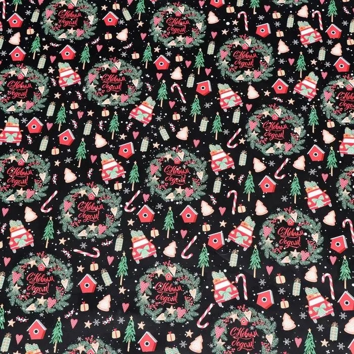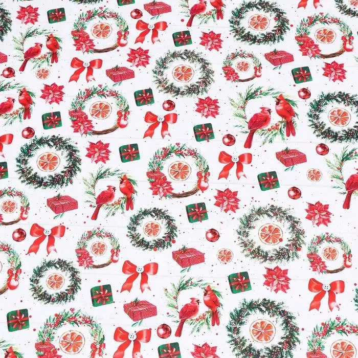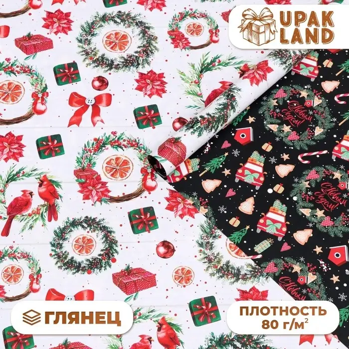 Бумага упаковочная глянцевая «Рождественские веночки», двусторонняя, 70×100 см