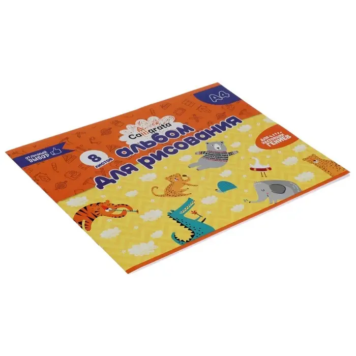 Альбом для рисования А4, 8 листов на скрепке Calligrata, бумажная обложка, блок 100 г/м²