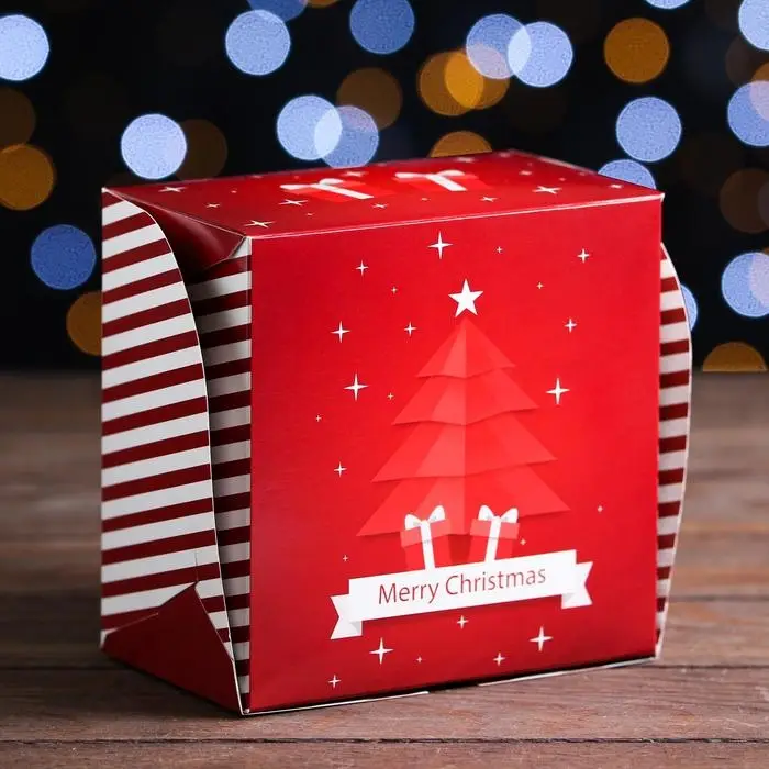 Коробка складная, двухсторонняя, Merry Christmas, 16×16×10 см