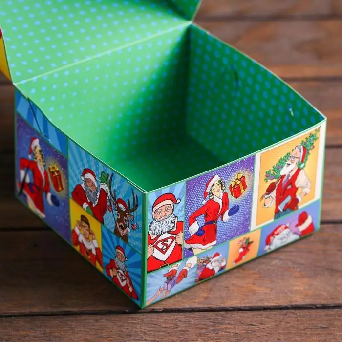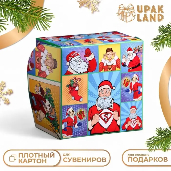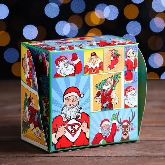 Коробка складная, двухсторонняя, «Новогодние супергерои», 16×16×10 см