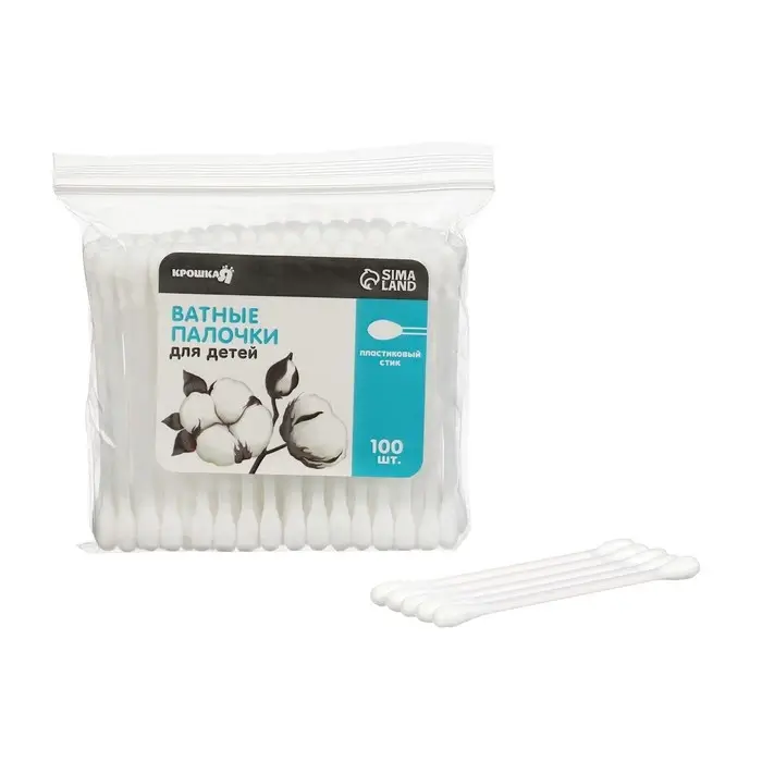 Ватные палочки для детей Крошка Я, пакет 100 шт., наконечник - классика