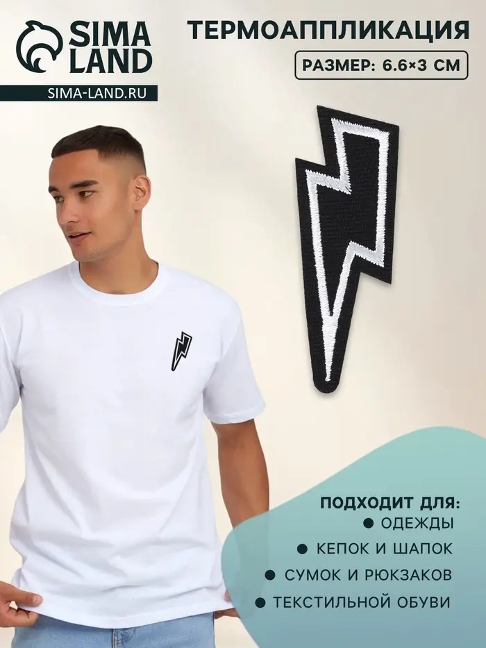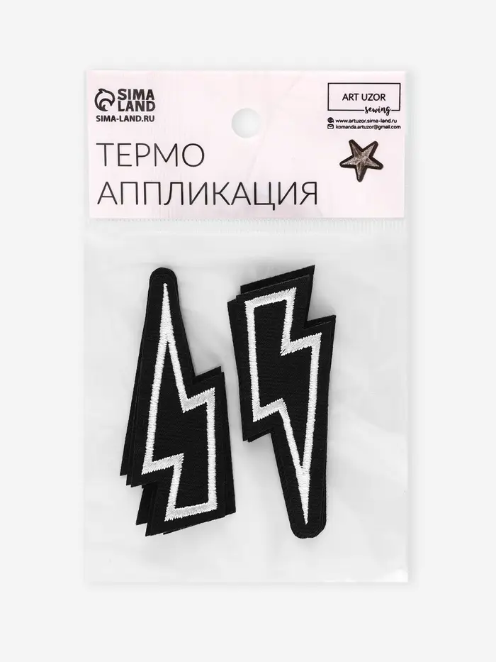 Термоаппликация «Молния», 6.6×3 см, чёрная